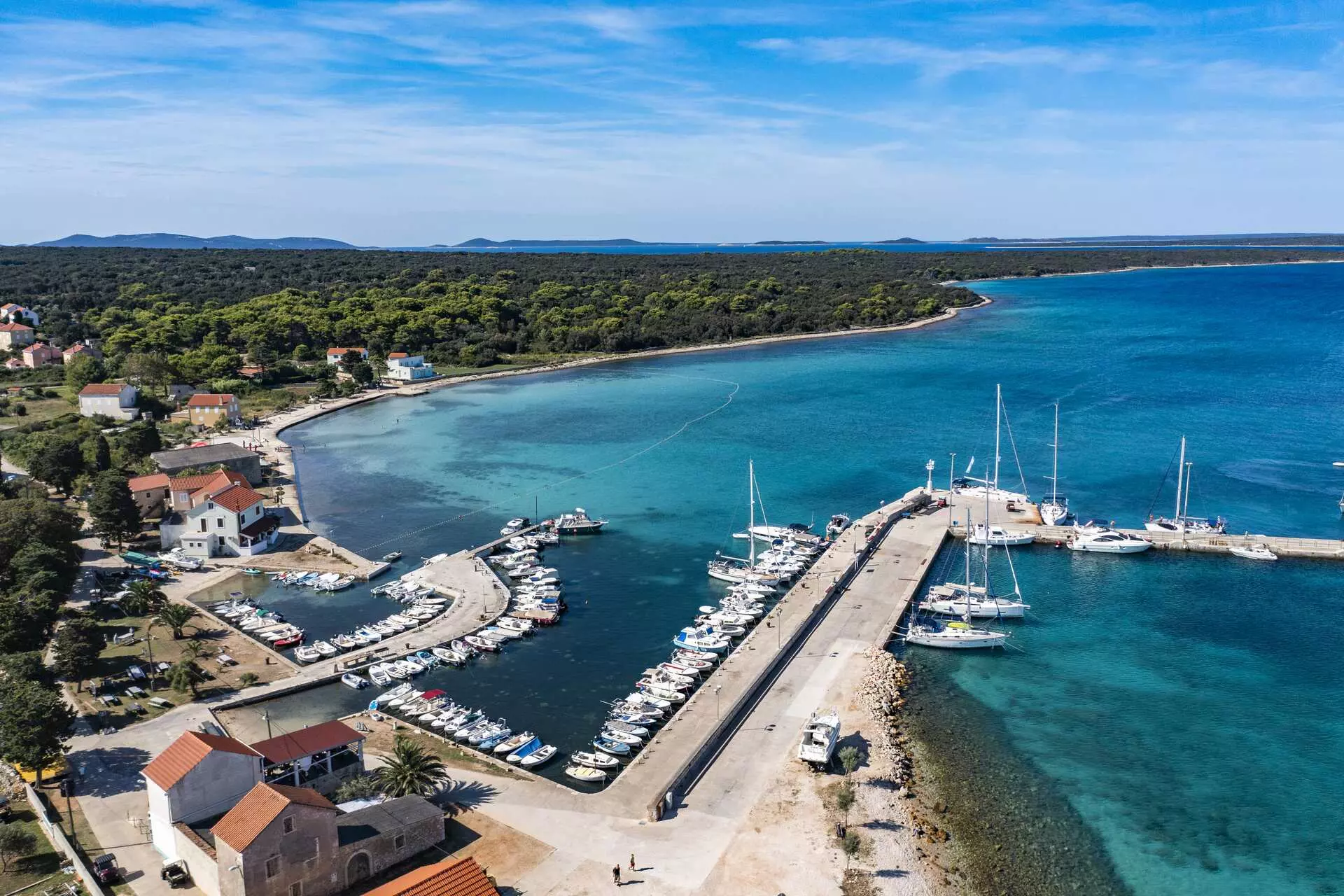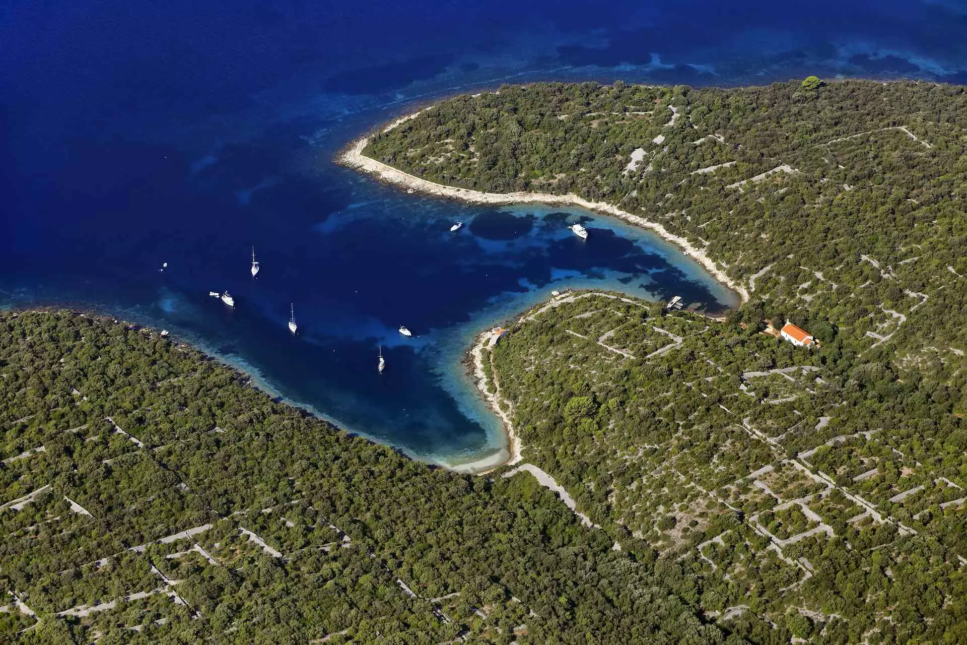 The surrounding islets and their sheltered coves make it an excellent overnight anchorage for yachts, with the sandy seabed providing reliable holding in conditions where rockier anchorages elsewhere in Croatia might give cause for concern.
