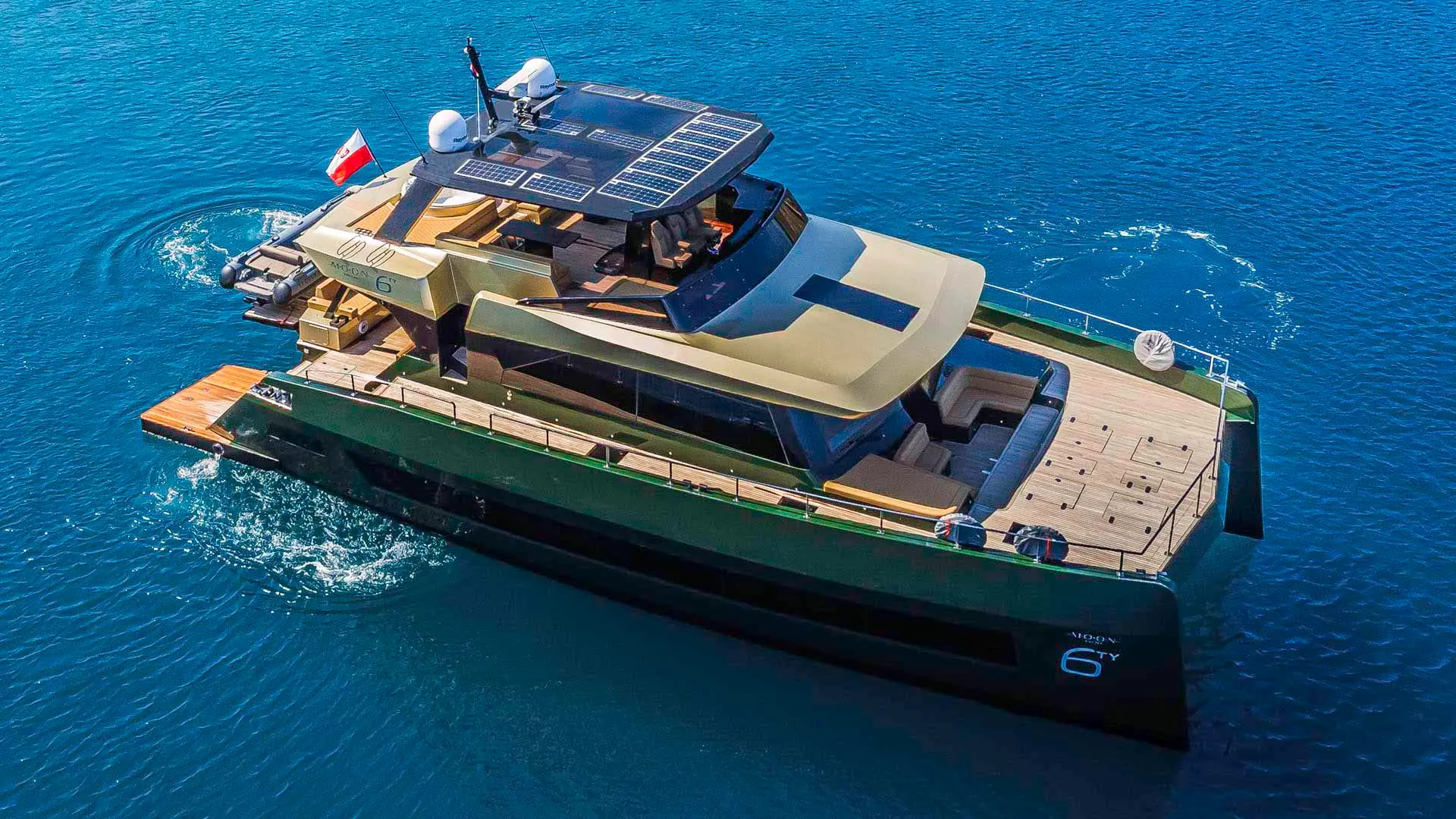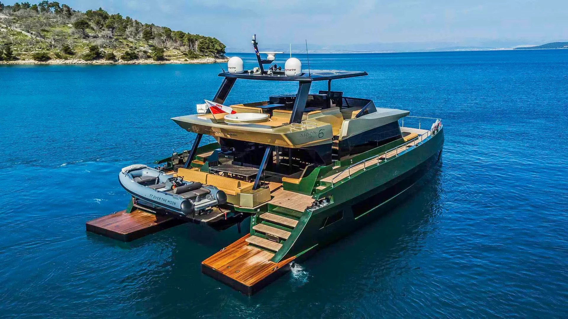 Polish shipyard, Moon Yacht, is one of the newest producers of high-quality catamarans, aiming to provide great comfort and uniqueness to their customers. Moon 60 Power Over the Moon redefines the concept of luxury and space for catamarans, making her a perfect combination of a traditional sailing yacht with modern design. She has a personalized design, offering her guests great conditions for relaxation. Luxury power catamaran Over the Moon has 4 double guest cabins for up to 8 guests that are catered by a crew of 3.