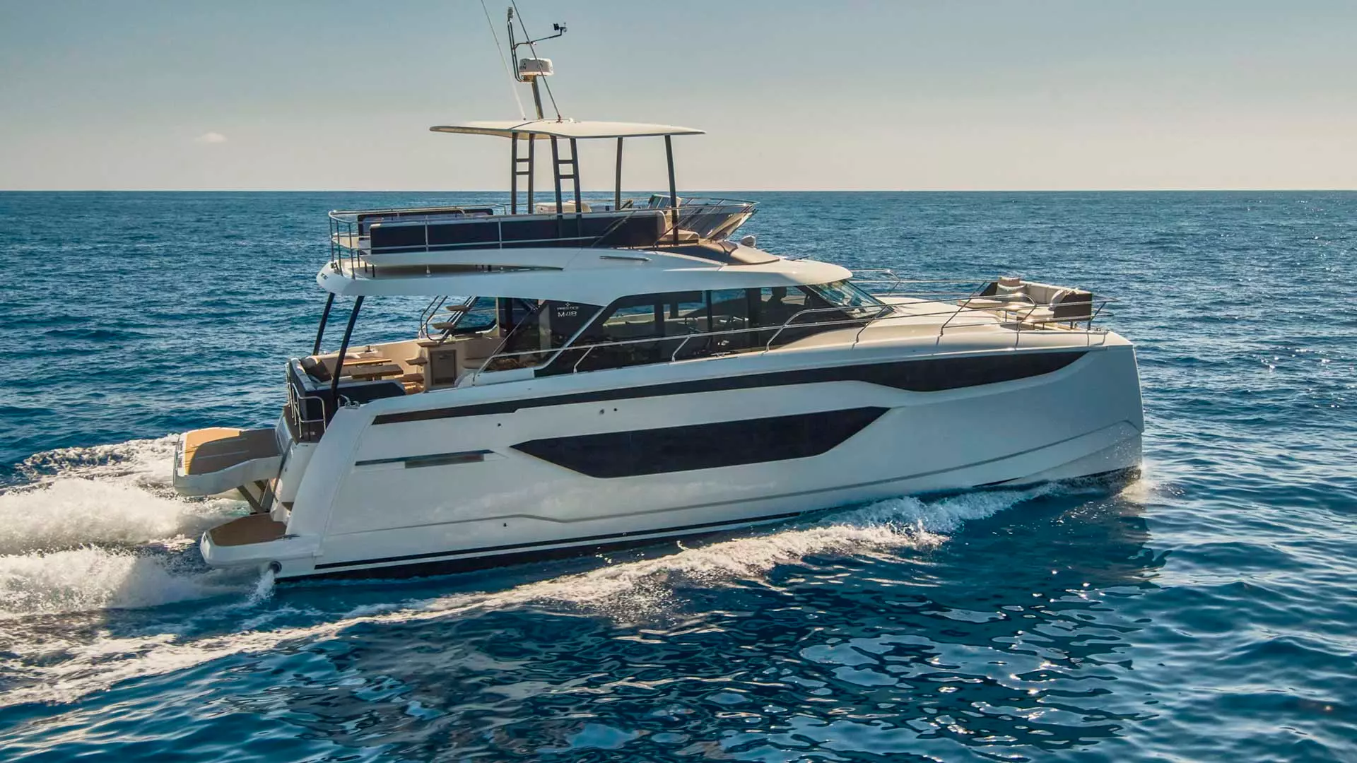 The Prestige M48 is a distinctive multi-hull yacht designed to provide freedom of movement and stability. Besides, her generous, well lit and refined living spaces offer the ultimate in comfort, encouraging a life in harmony with the sea at a gentle pace. This 14-meter-long power catamaran is suitable to accommodate up to 6 guests in 3 cabins, catered by the experienced skipper.