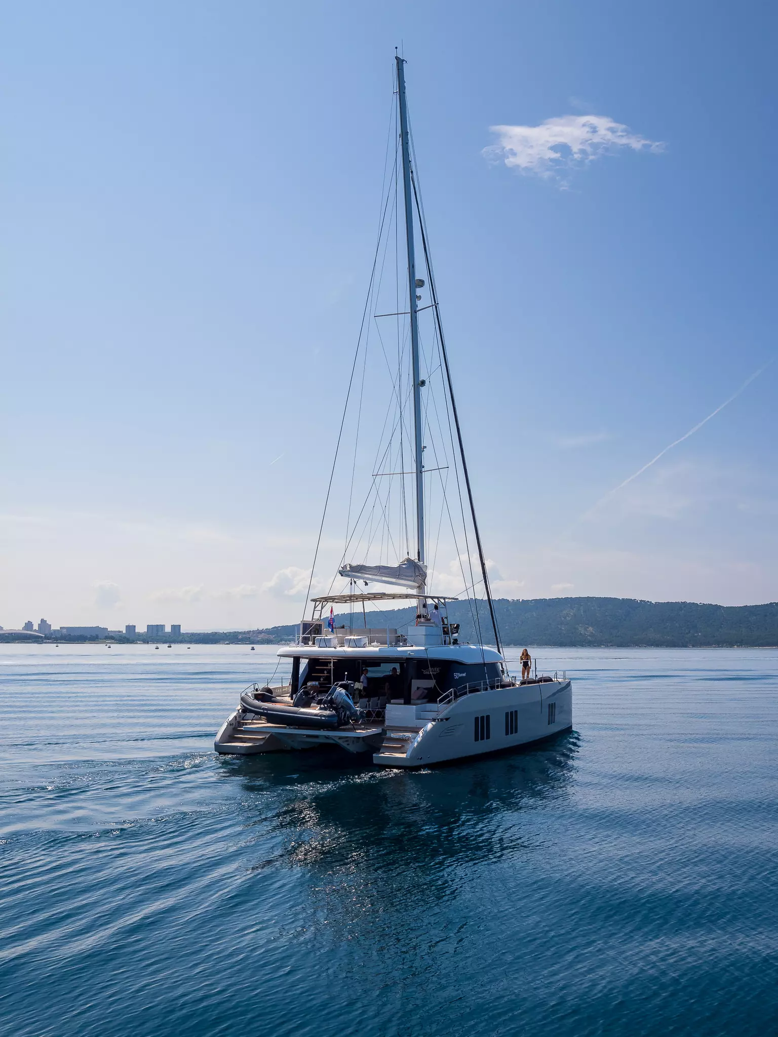 The Sunreef 50 Sweet Dreams luxury catamaran has super yacht quality in a compact package. As the smallest of the extensive range of Sunreef Yachts, she is an all-around sailing leisure yacht ideal for exclusive getaways, charter, and transoceanic adventures. Her clever bridge deck and superstructure design allow for a superior level of comfort onboard whereas the generous teak use, high bulwarks, and elegant lines underscore her modern, timeless style.