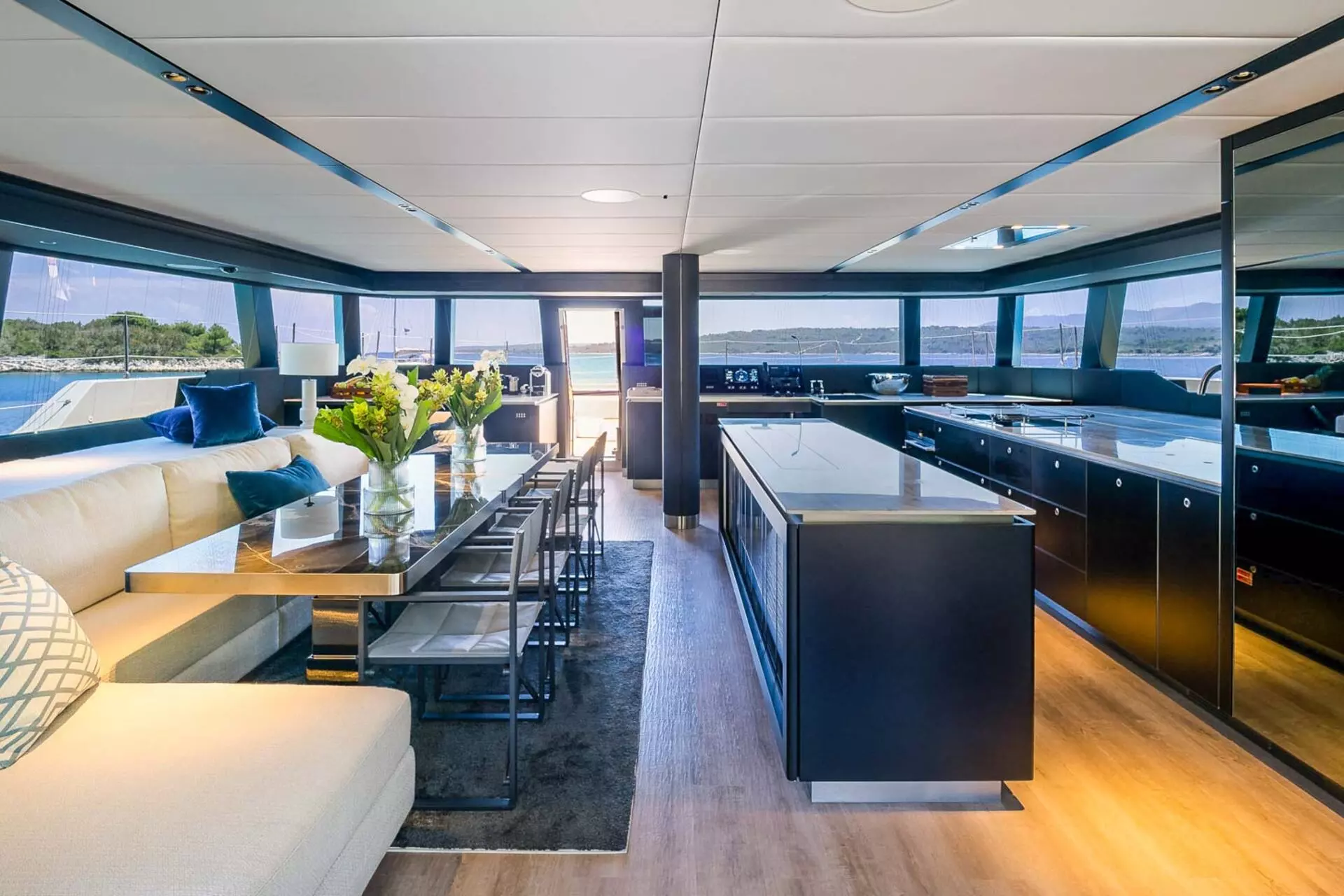 Guests aboard the N+1 Sunreef 70 Eco can enjoy a customizable menu based on guest preferences.