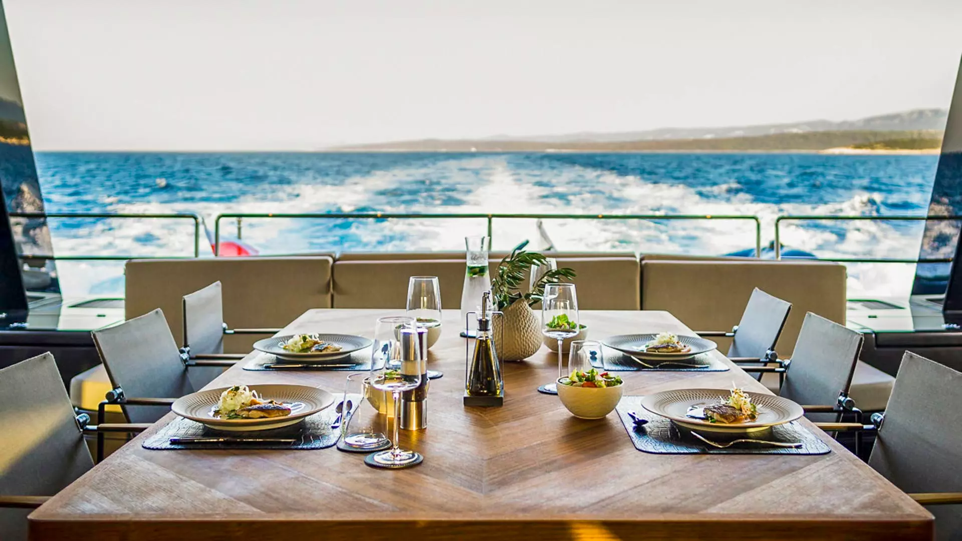 Guests aboard the Sunreef 70 Power can enjoy a customizable menu based on guest preferences.