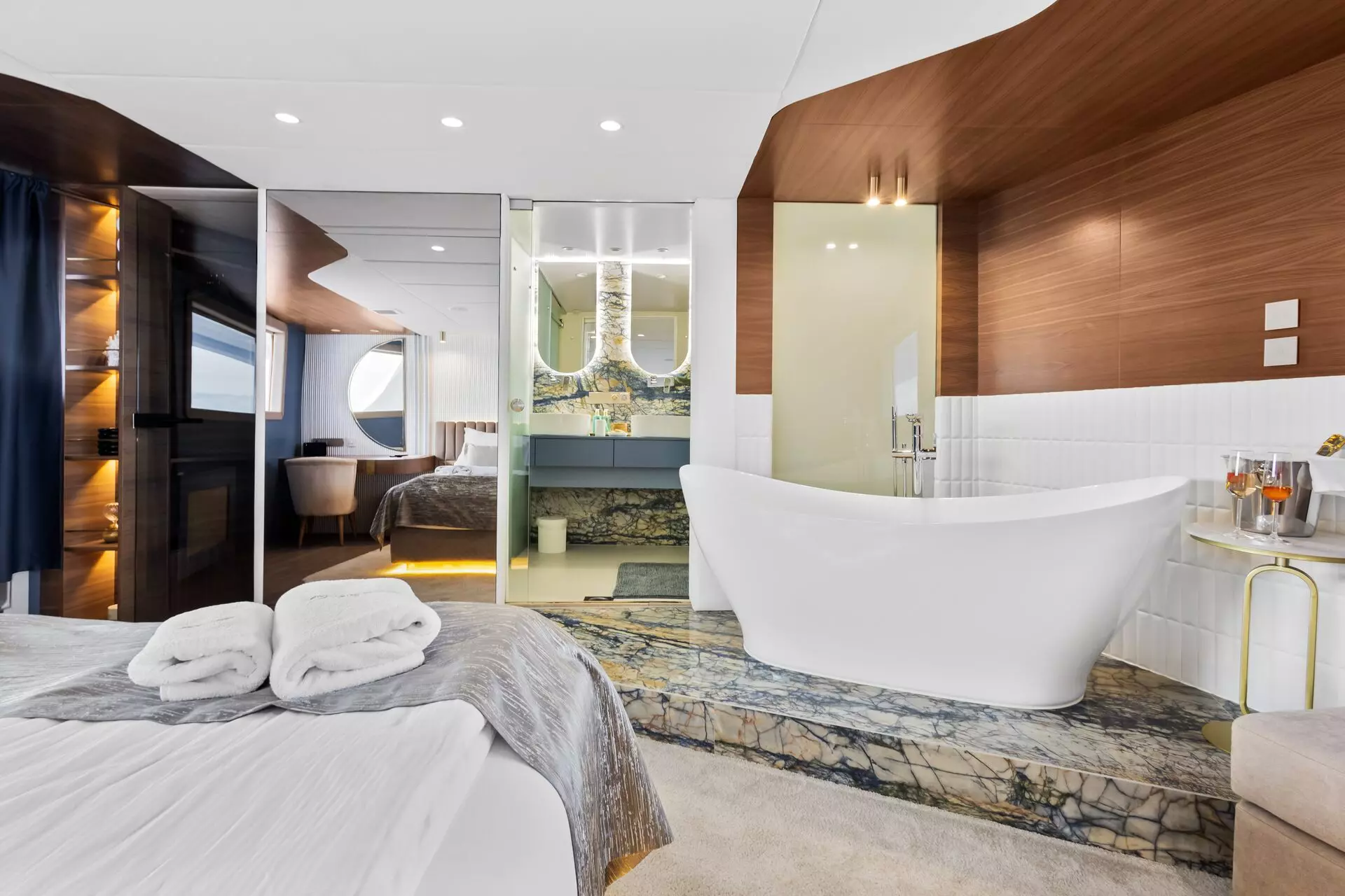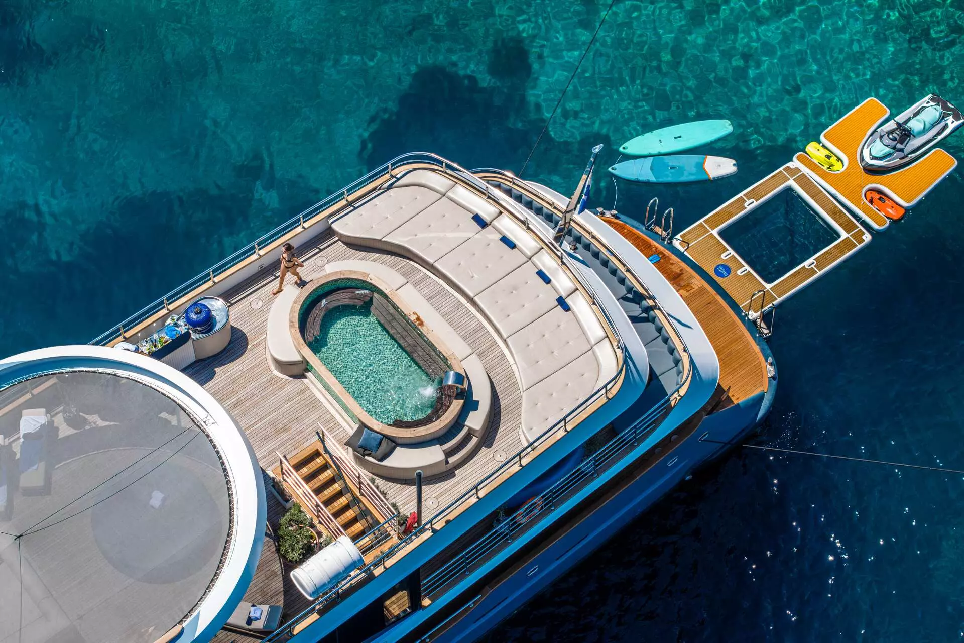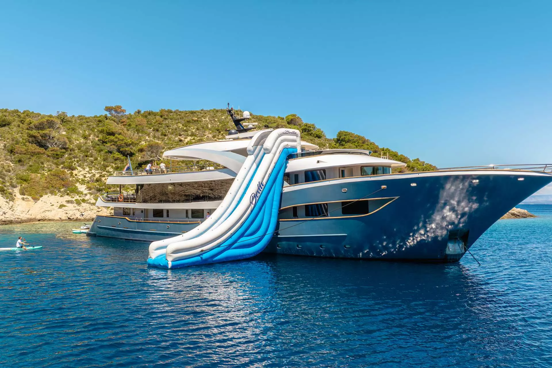 Fresh from her recent refit, yacht Bella now welcomes up to 21 guests across 10 enchanting suites. Highlights of her upgrade include a gentlemen’s bar, beauty salon, kids’ playroom, cinema, open-air gym, and an impressive collection of water toys.