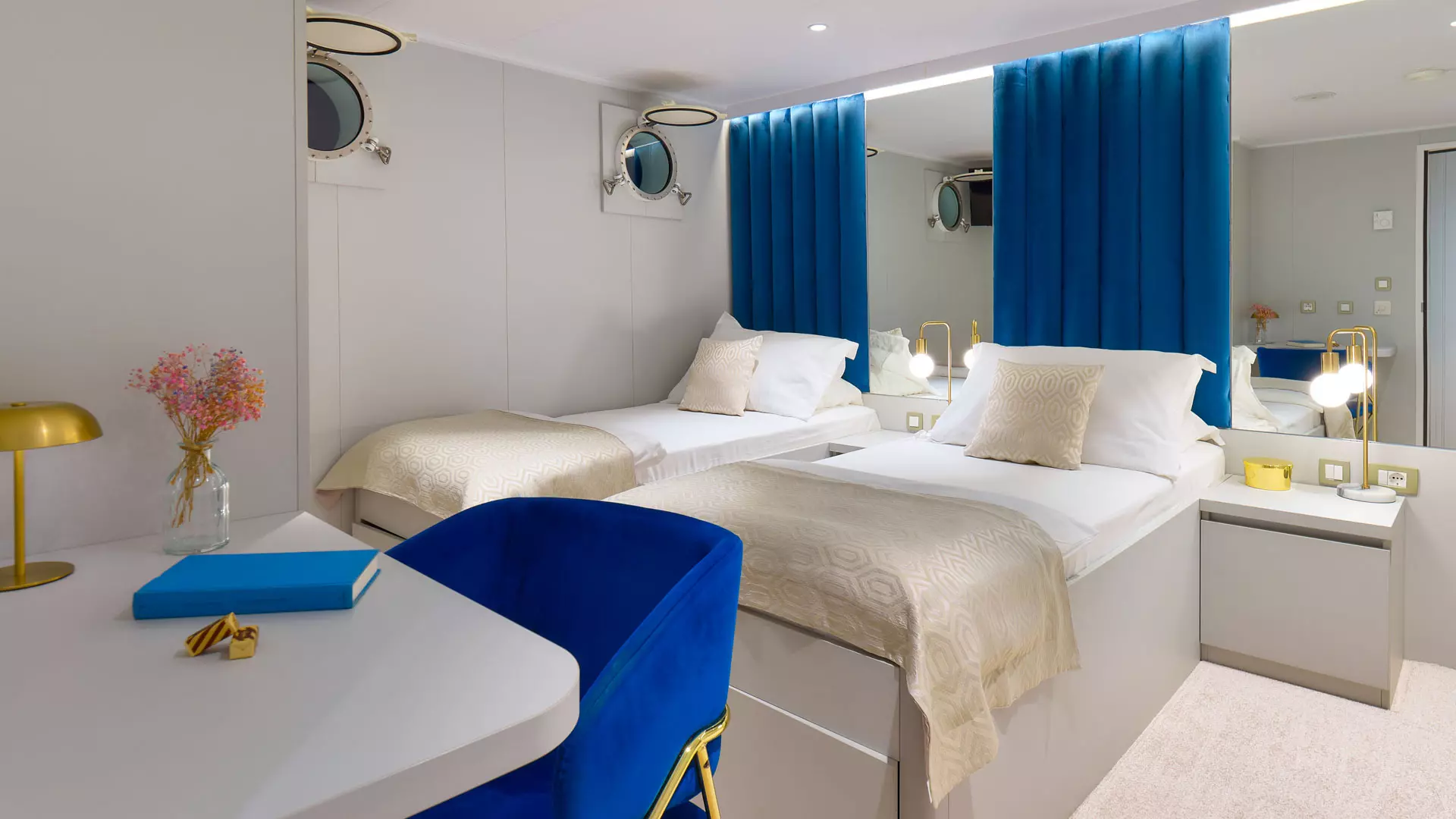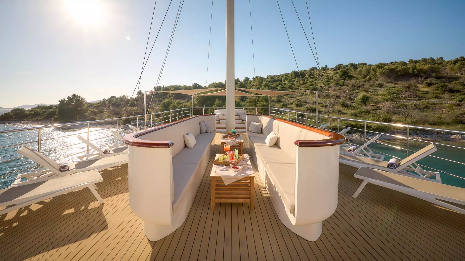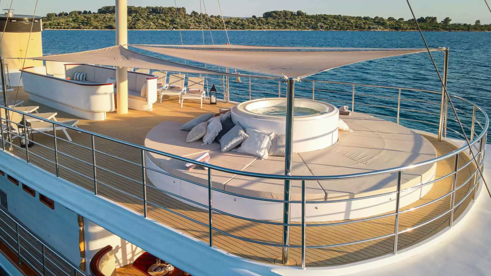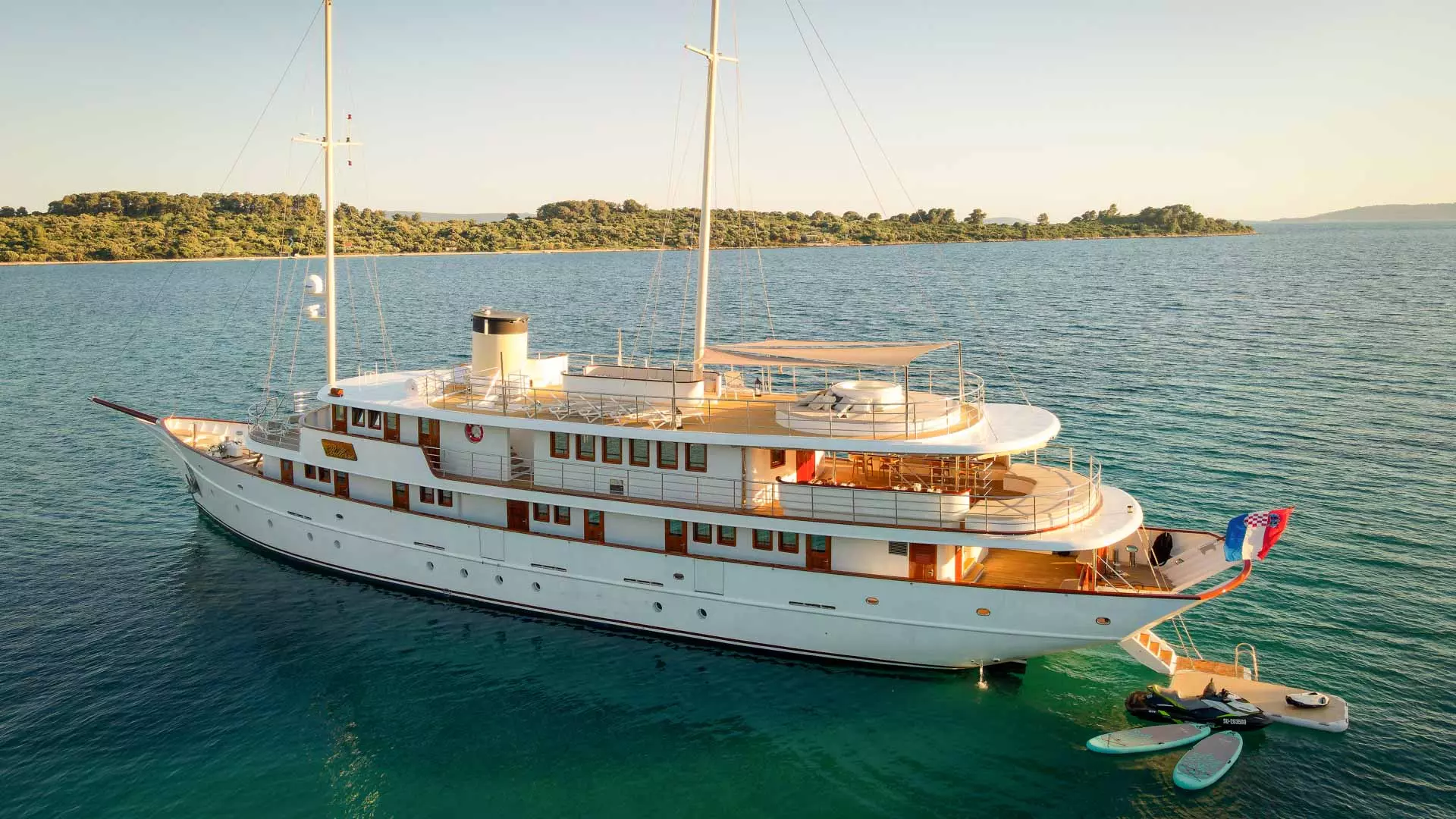 Bellezza, the 52-meter luxury cruiser built in 2019, sets the standard in Croatian luxury cruising. With space for up to 38 guests across 18 stylish cabins, she ensures luxury and comfort. Guests can unwind on the vast sun deck and jacuzzi, or enjoy the foldable bathing platform with showers at the stern. Interior of Bellezza boasts individually controlled air-conditioned cabins, each with a private bathroom, LCD TV, safe, and daily towel service. With a dedicated 10-member crew, Bellezza offers extraordinary cruising experience.