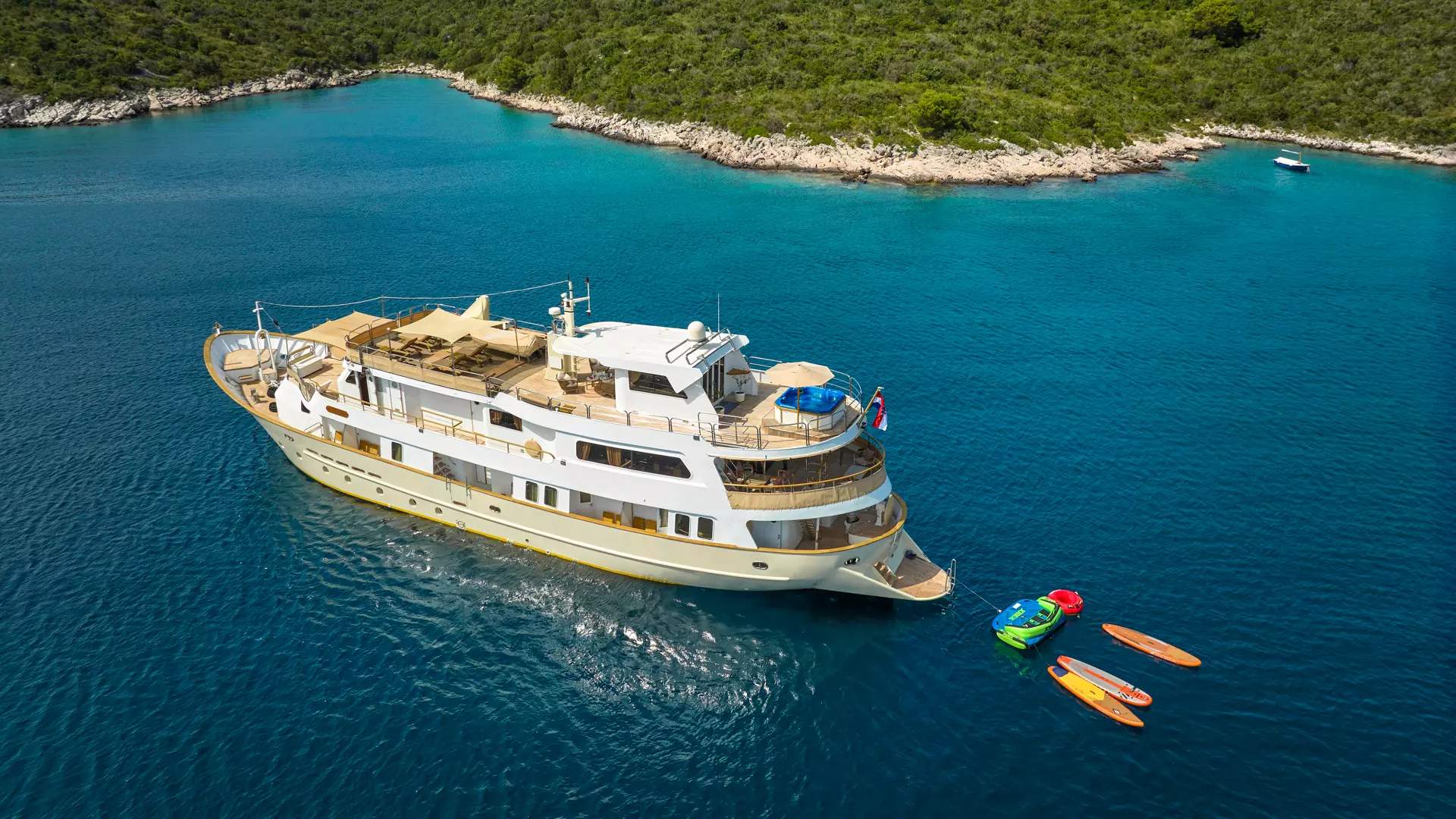The La Perla boutique yacht cruise ship in Croatia is a veritable floating five-star resort, designed for those seeking the utmost comfort and indulgence. At 40 meters, La Perla effortlessly combines style, space, and elegance. This exceptional yacht boasts eight cabins and a dedicated crew of nine, ensuring a personalized and unforgettable experience.