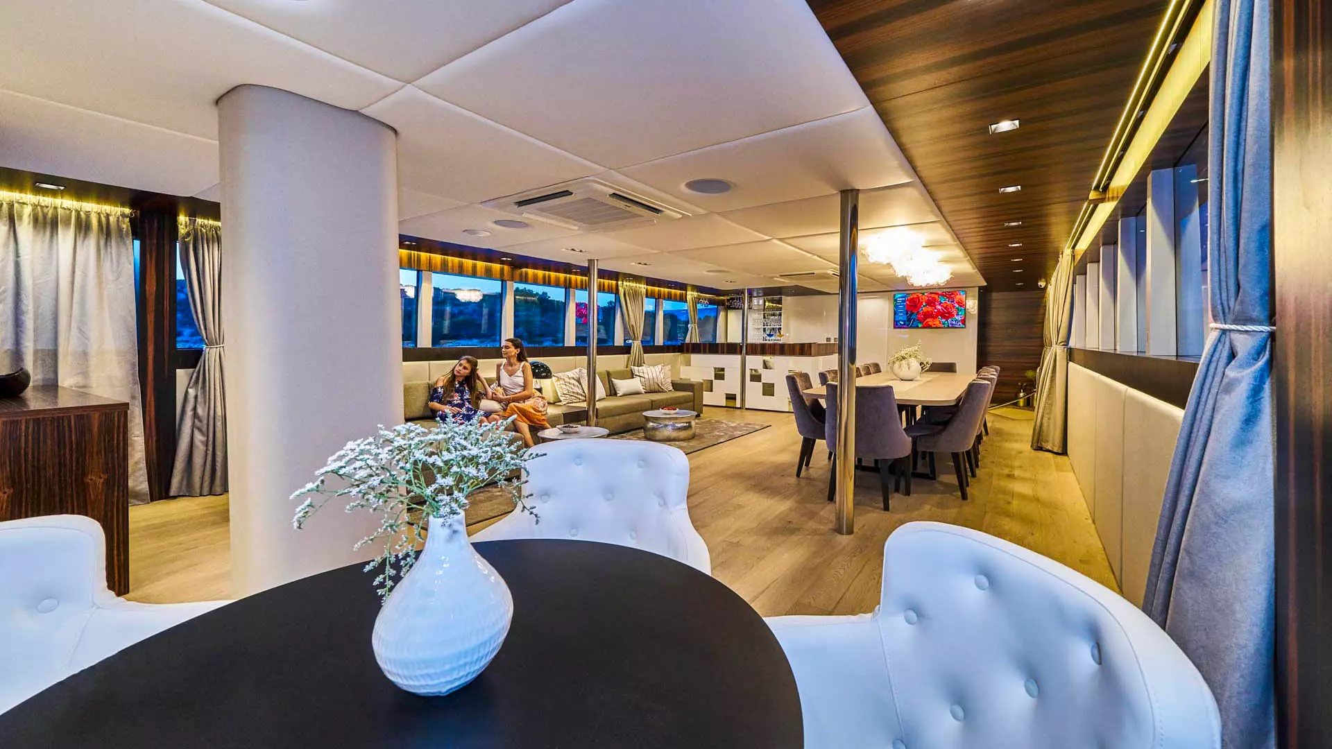 Guests can enjoy delicious cuisine freshly prepared by the onboard chef. Meals are crafted using high-quality, local ingredients, with menus tailored to guests’ preferences.