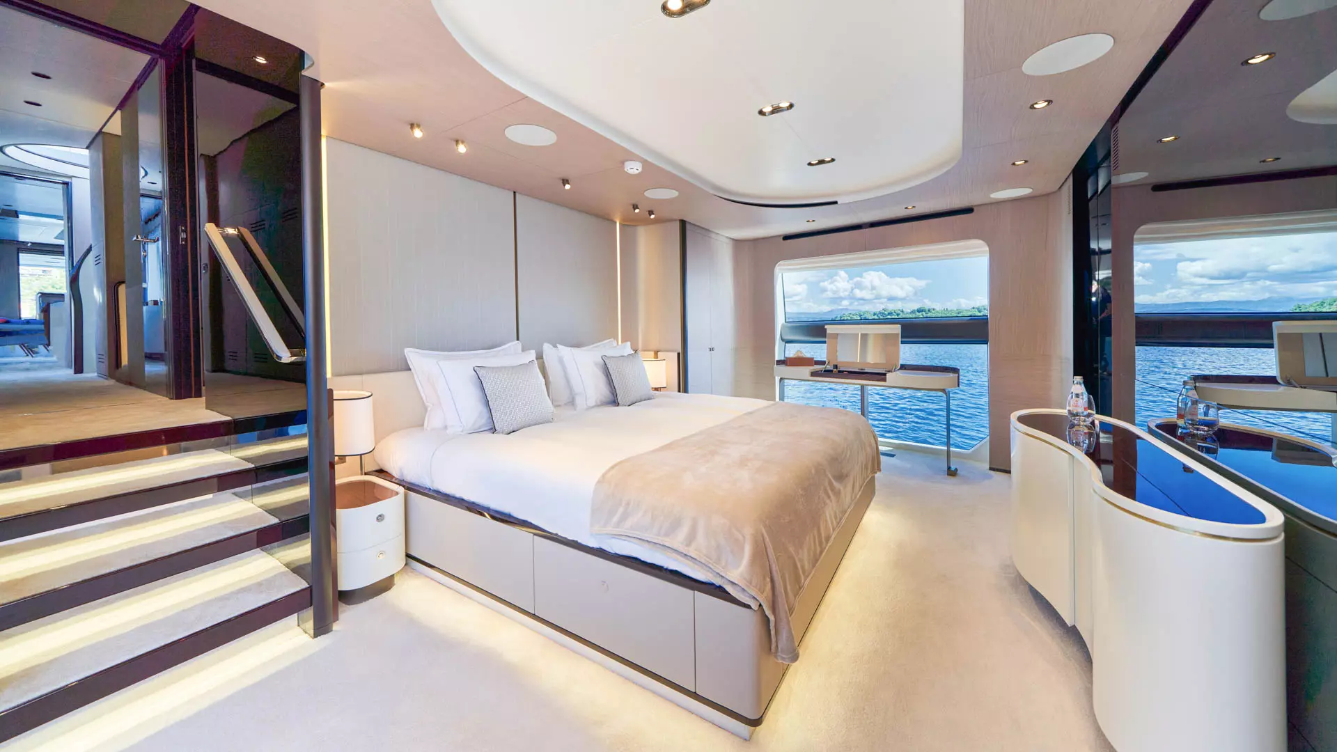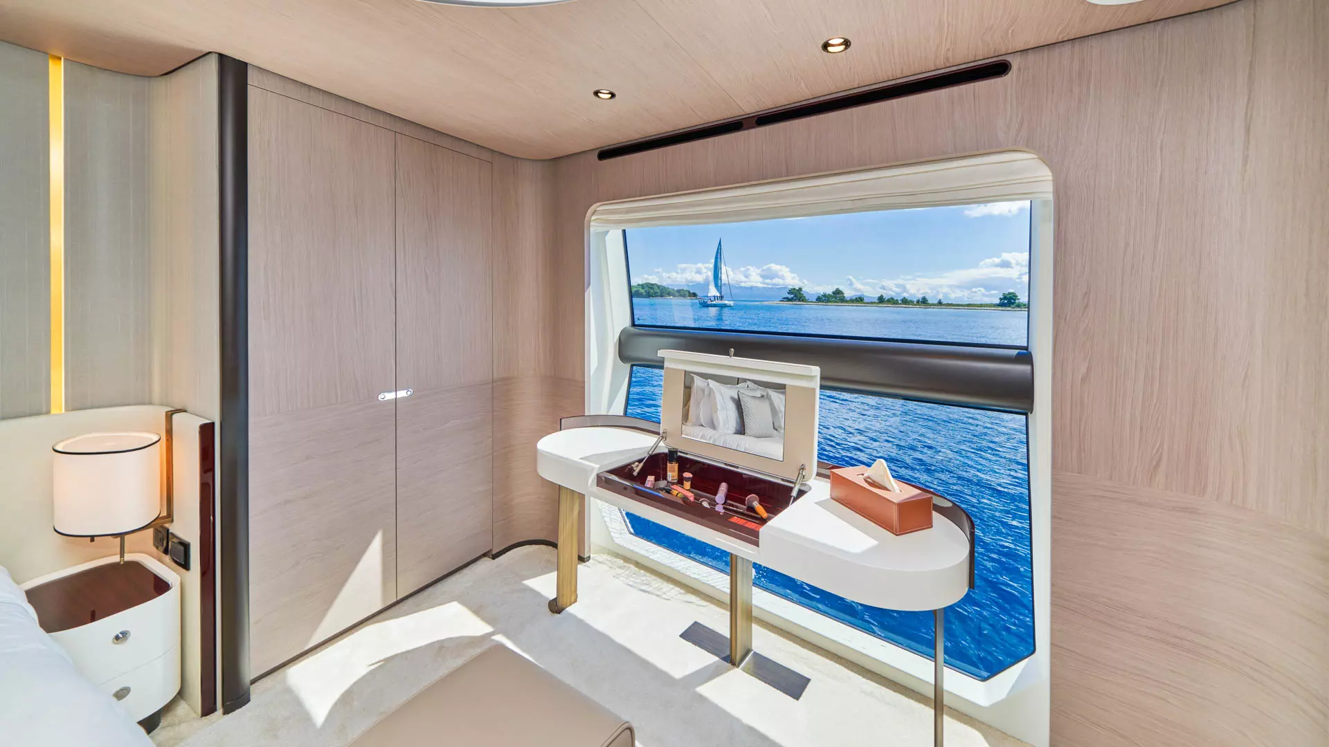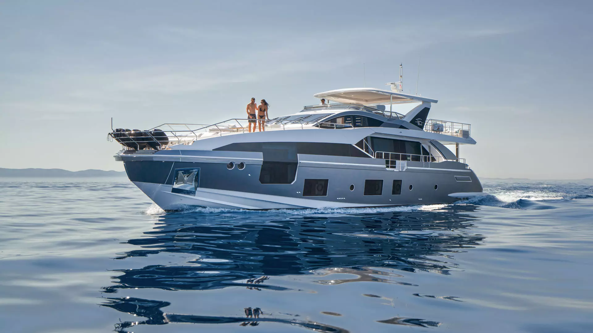 The brand-new Azimut Grande 27M delivered in April 2024 exhibits a multi-talented philosophy by combining sumptuous comfort with performance. As the first of her kind to offer a raised pilot house, this pioneering boat piece reimagines environments by capitalizing on space, introducing the owner’s suite on the main deck as well as four guest cabins below it. The extensive use of carbon fiber effectively ensures generous volumes without impacting the weight, enabling this vessel to deliver a highly comfortable maritime lifestyle.