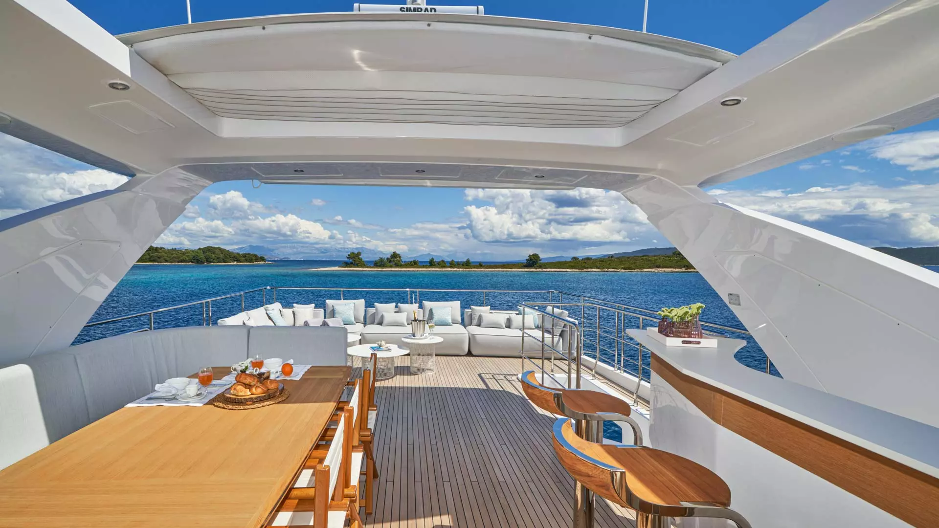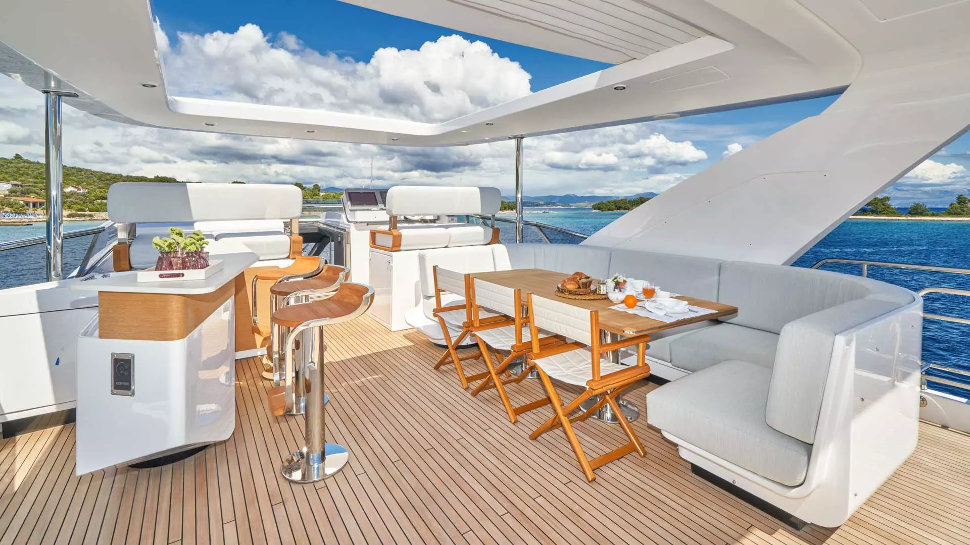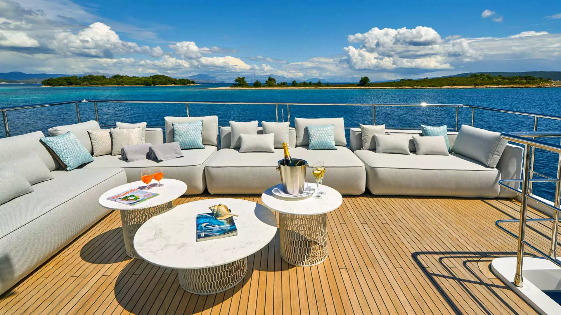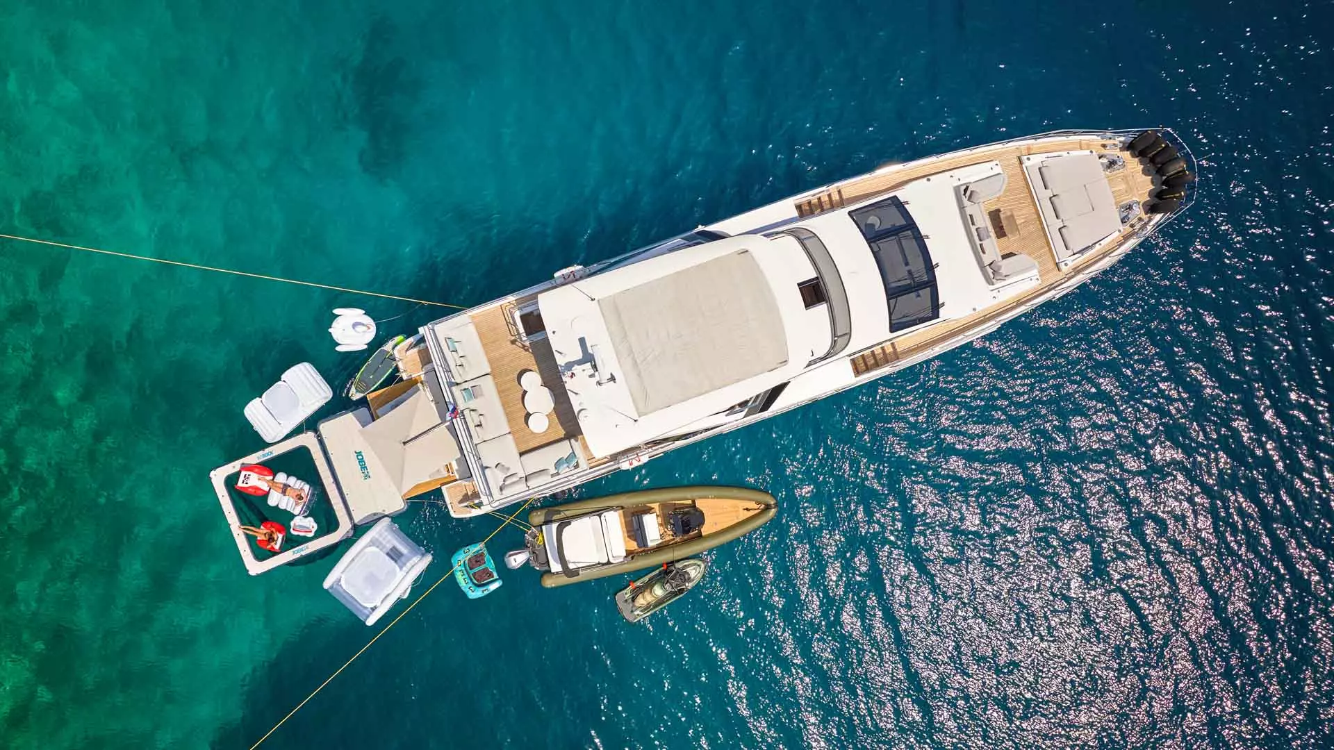 Aluminia Too is operated by a dedicated crew of four professionals, ensuring a seamless and luxurious experience on board. The Captain, Chef, Stewardess and Deckhand earned service excellence certificates by Mathieu Barbe.