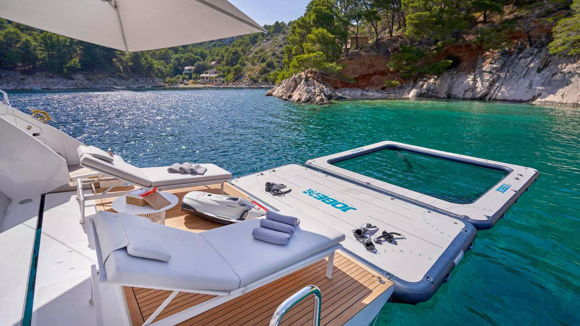 Aluminia Too is perfect for relaxing, dining, or entertaining with friends and family. Guests can enjoy a variety of water toys, adding fun and adventure to every stop along the way.
