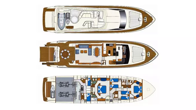Miss Katariina is a prestige Ferretti yacht that will delight you with her 5-star appearance. Moreover, as fully air-conditioned and capable of a top speed of over 31 knots, Miss Katariina will provide unforgettable cruising moments. This Ferretti 880 yacht, built in 2004, is kept by her owner in mint condition so she was under an extensive refit in 2020 and in 2023 all the outside cushions were changed. The 27-meter-long yacht Miss Katariina is surely the perfect charter boat for families as well as for friends looking for excellent fun.