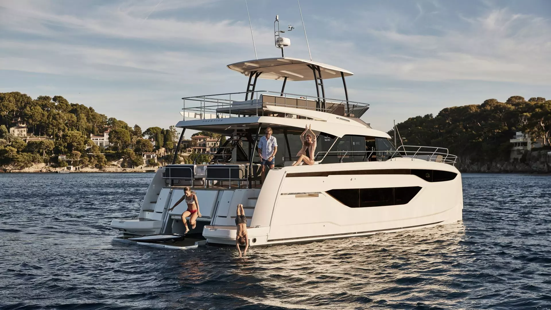 Prestige M48 is a blend of luxury and modern design in a power cat form. Versatile and elegant, it is perfect for relaxing cruises or charter, with an emphasis on comfy cabins and roomy outdoor spaces